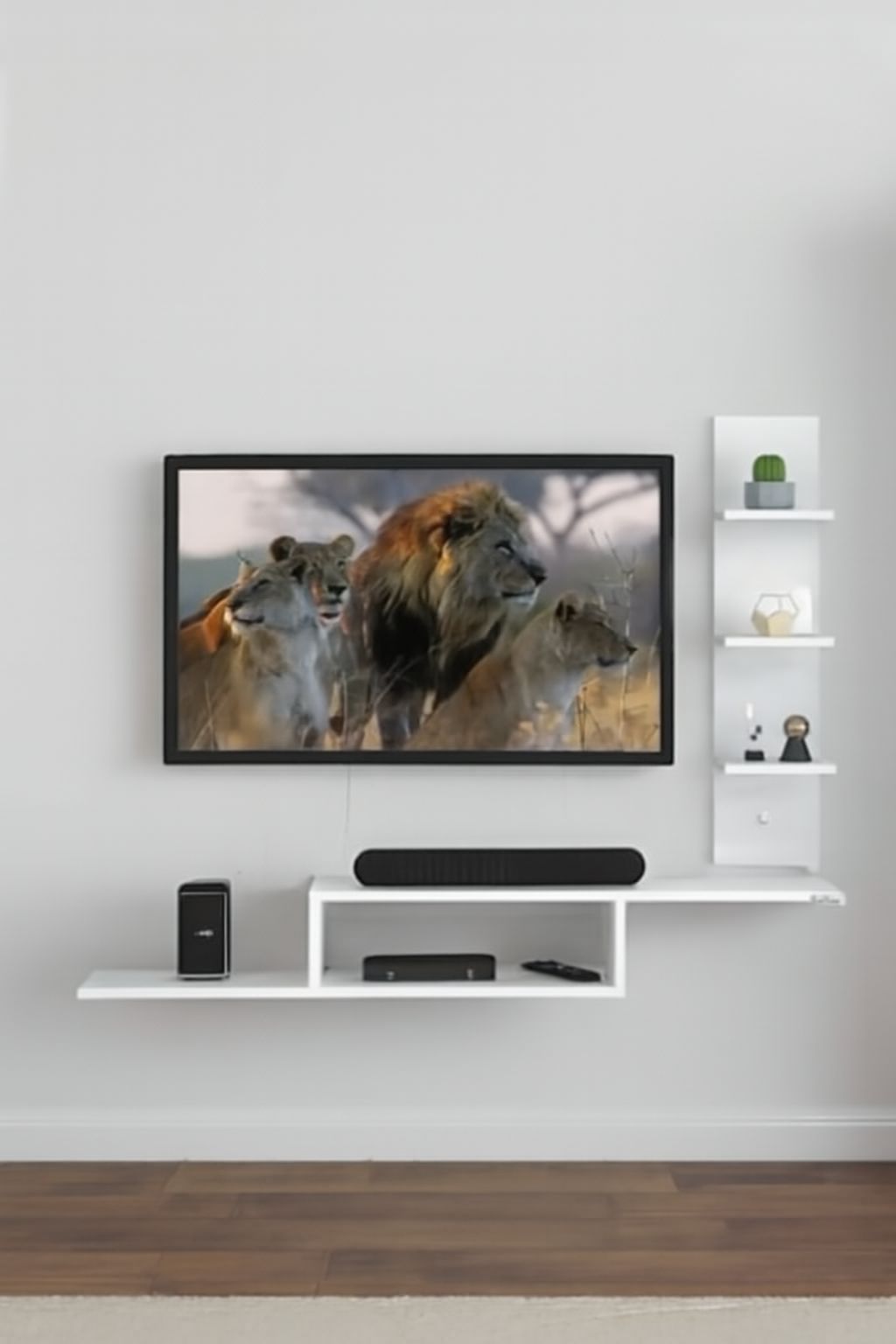 Apportez une touche de modernité et de légèreté à votre salon avec ce meuble TV mural flottant. Conçu dans un style minimaliste, il combine élégance et fonctionnalité, idéal pour les intérieurs contemporains. Avec ses étagères ouvertes et son design suspendu, il offre un rangement pratique pour vos appareils multimédia, tout en gardant votre espace propre et aéré.